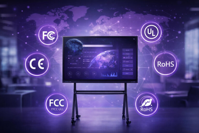 Wenn Sie sich auf eine öffentliche Ausschreibung vorbereiten, ein Großprojekt leiten oder planen, Vertriebspartner zu werden, gibt es eine Sache, die Sie auf keinen Fall ignorieren dürfen: Zertifizierungen für interaktive DisplaysIn stark regulierten Märkten wie der Europäischen Union und den Vereinigten Staaten müssen elektronische Produkte strenge Normen erfüllen, bevor sie importiert, verkauft oder eingesetzt werden dürfen. Ohne die entsprechenden Zertifizierungen kann selbst das beste Produkt vom Zoll zurückgewiesen oder von Ausschreibungen ausgeschlossen werden. In diesem Leitfaden erkläre ich Ihnen die wichtigsten Zertifizierungen für interaktive Displays – damit Sie bei der Kommunikation mit einem solchen Gerät auf die entsprechenden Zertifizierungen achten können. Smartboard-HerstellerSie werden genau verstehen, was jede Zertifizierung bedeutet, warum sie wichtig ist und wie sie sich direkt auf den Erfolg Ihres Projekts auswirkt.