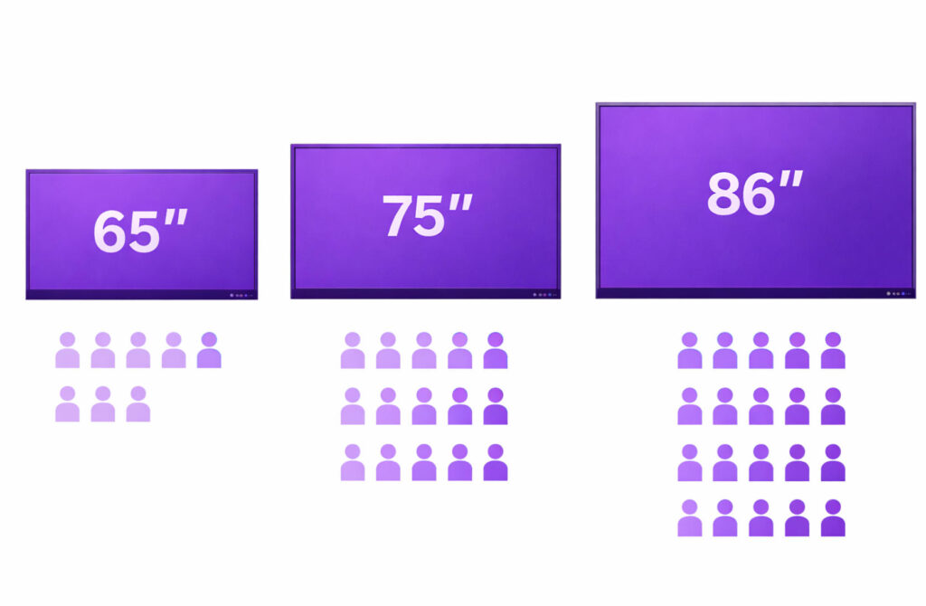 Selecting the right smart board size is essential for creating a comfortable viewing and interaction experience. The two most important factors to consider are room size and number of users. A display that’s too small can make content hard to see, while an oversized screen in a compact room may feel overwhelming.